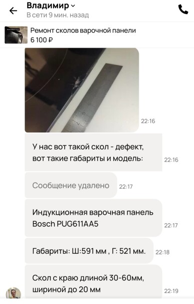 Все три заказчика обратились к нам с просьбой, помочь им в решении проблемы: устранить скол, небольшое повреждение на варочной панели, плите.